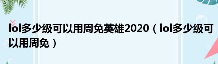 大家好,今天小六子来为大家解答以下的问题,关于lol多少级可以用周免英雄2020,lol多少级可以用周免这个很多人还不知道,现在让我们一起来看看吧!