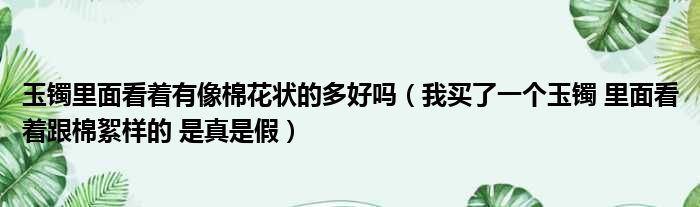 大家好,今天小六子来为大家解答以下的问题,关于玉镯里面看着有像棉花状的多好吗,我买了一个玉镯 里面看着跟棉絮样的 是真是假这个很多人还不知道,现在让我们一起来看看吧!