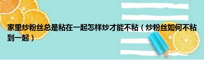 大家好,今天小六子来为大家解答以下的问题,关于家里炒粉丝总是粘在一起怎样炒才能不粘,炒粉丝如何不粘到一起这个很多人还不知道,现在让我们一起来看看吧!