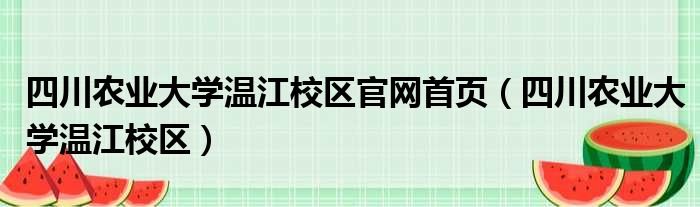 大家好,今天小六子来为大家解答以下的问题,关于四川农业大学温江校区官网首页,四川农业大学温江校区这个很多人还不知道,现在让我们一起来看看吧!