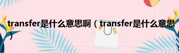 大家好,今天小六子来为大家解答以下的问题,关于transfer是什么意思啊,transfer是什么意思这个很多人还不知道,现在让我们一起来看看吧!