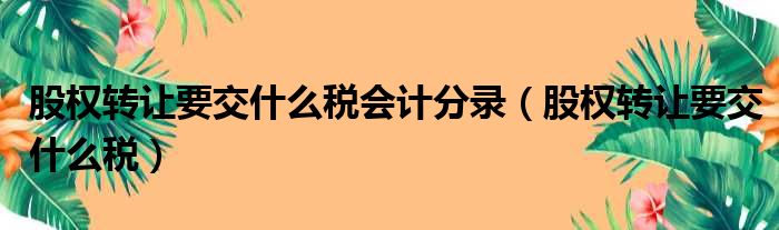 大家好,今天小六子来为大家解答以下的问题,关于股权转让要交什么税会计分录,股权转让要交什么税这个很多人还不知道,现在让我们一起来看看吧!