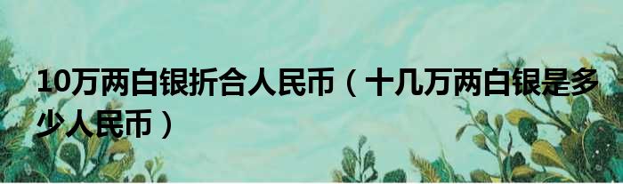 大家好,今天小六子来为大家解答以下的问题,关于10万两白银折合人民币,十几万两白银是多少人民币这个很多人还不知道,现在让我们一起来看看吧!