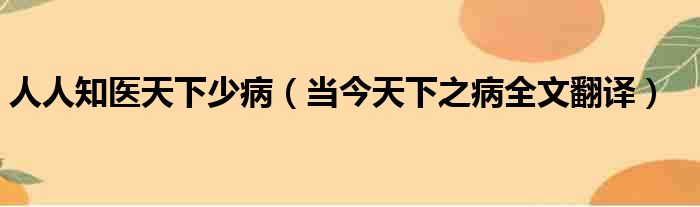 人人知医天下少病 当今天下之病全文翻译 网络整理 经验 2023-06-05 14:49:40 大家好,今天小六子来为大家解答以下的问题,关于人人知医天下少病,当今天下之病全文翻译这个很多人还不知道,现在让我们一起来看看吧!1、翻译成:如今天下的弊病。2、臣请求用得病的人来作比喻。本文分享完毕,希望对你有所帮助。 声明:免责声明:本文来源网友投稿及网络整合仅代表文章作者的个人观点,与本站无关。其原创性、真实性以及文中陈述文字和内容未经本站证实,对本文以及其中全部或者部分内容文字的真实性、完整性和原创性本站不作任何保证或承诺,请读者仅作参考,并自行核实相关内容。投诉邮箱:1765130767@qq.com。 本文地址:https://www.anfu123.com/jingyan/100795.html