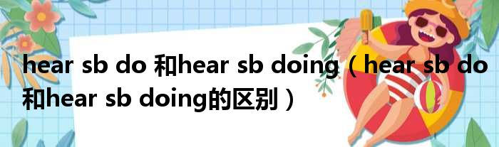 1、hear sb do sth 听到某人做某事,暗示过程完成.如:我听到他关掉电视.I heard him turn off the TV. hear sb doing sth 听到某人正在做某事,强调动作的进行,可能你听到的只是动作的一部分.如:我经过这里时听到有人唱歌.I heard someone singing when I passed by. 如果用I heard someone sing the song.就暗示“我”听完了整首歌.。