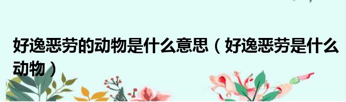 大家好,今天小六子来为大家解答以下的问题,关于好逸恶劳的动物是什么意思,好逸恶劳是什么动物这个很多人还不知道,现在让我们一起来看看吧!