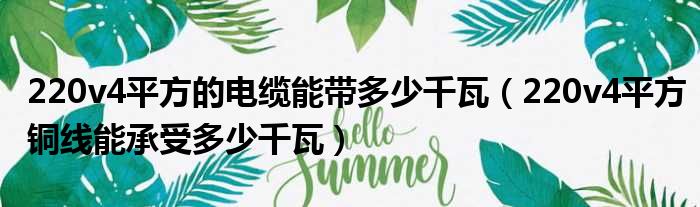 大家好,今天小六子来为大家解答以下的问题,关于220v4平方的电缆能带多少千瓦,220v4平方铜线能承受多少千瓦这个很多人还不知道,现在让我们一起来看看吧!
