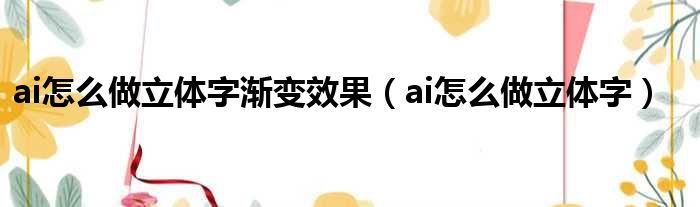 大家好,今天小六子来为大家解答以下的问题,关于ai怎么做立体字渐变效果,ai怎么做立体字这个很多人还不知道,现在让我们一起来看看吧!