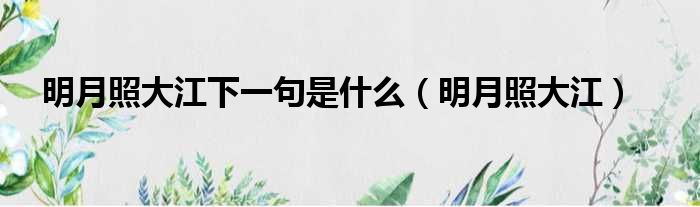 大家好,今天小六子来为大家解答以下的问题,关于明月照大江下一句是什么,明月照大江这个很多人还不知道,现在让我们一起来看看吧!