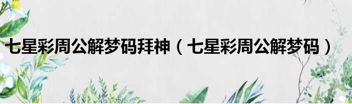 大家好,今天小六子来为大家解答以下的问题,关于七星彩周公解梦码拜神,七星彩周公解梦码这个很多人还不知道,现在让我们一起来看看吧!