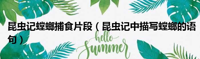 大家好,今天小六子来为大家解答以下的问题,关于昆虫记螳螂捕食片段,昆虫记中描写螳螂的语句这个很多人还不知道,现在让我们一起来看看吧!