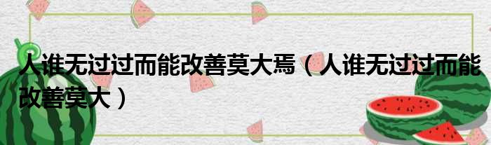 大家好,今天小六子来为大家解答以下的问题,关于人谁无过过而能改善莫大焉,人谁无过过而能改善莫大这个很多人还不知道,现在让我们一起来看看吧!