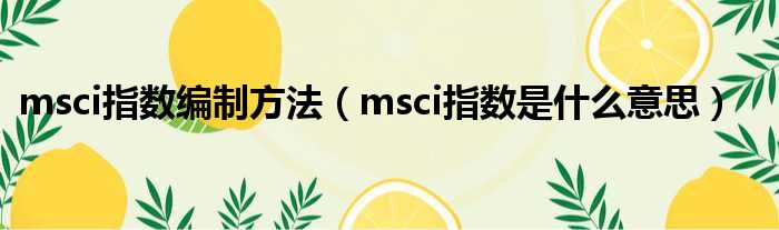 大家好,今天小六子来为大家解答以下的问题,关于msci指数编制方法,msci指数是什么意思这个很多人还不知道,现在让我们一起来看看吧!