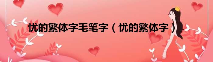 大家好,今天小六子来为大家解答以下的问题,关于忧的繁体字毛笔字,忧的繁体字这个很多人还不知道,现在让我们一起来看看吧!