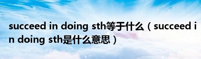 大家好,今天小六子来为大家解答以下的问题,关于succeed in doing sth等于什么,succeed in doing sth是什么意思这个很多人还不知道,现在让我们一起来看看吧!