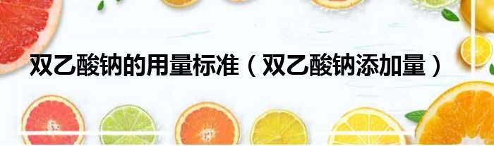 大家好,今天小六子来为大家解答以下的问题,关于双乙酸钠的用量标准,双乙酸钠添加量这个很多人还不知道,现在让我们一起来看看吧!