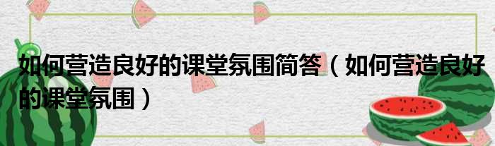 大家好,今天小六子来为大家解答以下的问题,关于如何营造良好的课堂氛围简答,如何营造良好的课堂氛围这个很多人还不知道,现在让我们一起来看看吧!