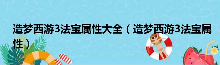 大家好,今天小六子来为大家解答以下的问题,关于造梦西游3法宝属性大全,造梦西游3法宝属性这个很多人还不知道,现在让我们一起来看看吧!