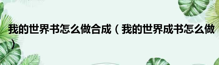 大家好,今天小六子来为大家解答以下的问题,关于我的世界书怎么做合成,我的世界成书怎么做这个很多人还不知道,现在让我们一起来看看吧!