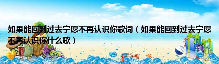 大家好,今天小六子来为大家解答以下的问题,关于如果能回到过去宁愿不再认识你歌词,如果能回到过去宁愿不再认识你什么歌这个很多人还不知道,现在让我们一起来看看吧!