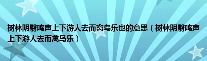 大家好,今天小六子来为大家解答以下的问题,关于树林阴翳鸣声上下游人去而禽鸟乐也的意思,树林阴翳鸣声上下游人去而禽鸟乐这个很多人还不知道,现在让我们一起来看看吧!