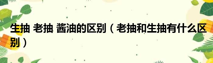 大家好,今天小六子来为大家解答以下的问题,关于生抽 老抽 酱油的区别,老抽和生抽有什么区别这个很多人还不知道,现在让我们一起来看看吧!