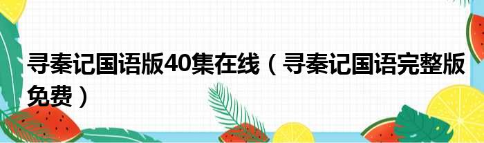 大家好,今天小六子来为大家解答以下的问题,关于寻秦记国语版40集在线,寻秦记国语完整版免费这个很多人还不知道,现在让我们一起来看看吧!