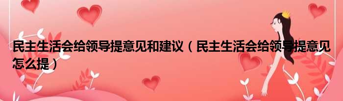 大家好,今天小六子来为大家解答以下的问题,关于民主生活会给领导提意见和建议,民主生活会给领导提意见怎么提这个很多人还不知道,现在让我们一起来看看吧!