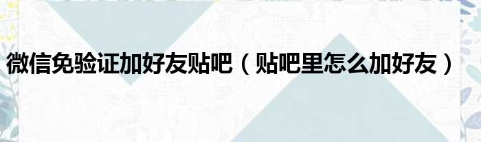 大家好,今天小六子来为大家解答以下的问题,关于微信免验证加好友贴吧,贴吧里怎么加好友这个很多人还不知道,现在让我们一起来看看吧!