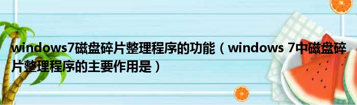 大家好,今天小六子来为大家解答以下的问题,关于windows7磁盘碎片整理程序的功能,windows 7中磁盘碎片整理程序的主要作用是这个很多人还不知道,现在让我们一起来看看吧!