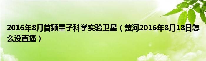 大家好,今天小六子来为大家解答以下的问题,关于2016年8月首颗量子科学实验卫星,楚河2016年8月18日怎么没直播这个很多人还不知道,现在让我们一起来看看吧!