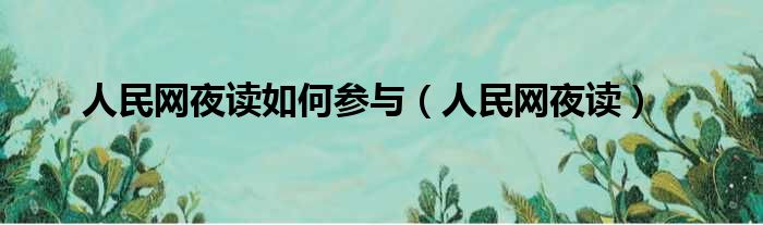 大家好,今天小六子来为大家解答以下的问题,关于人民网夜读如何参与,人民网夜读这个很多人还不知道,现在让我们一起来看看吧!