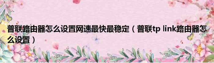 大家好,今天小六子来为大家解答以下的问题,关于普联路由器怎么设置网速最快最稳定,普联tp link路由器怎么设置这个很多人还不知道,现在让我们一起来看看吧!