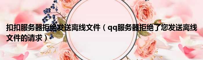 大家好,今天小六子来为大家解答以下的问题,关于扣扣服务器拒绝发送离线文件,qq服务器拒绝了您发送离线文件的请求这个很多人还不知道,现在让我们一起来看看吧!