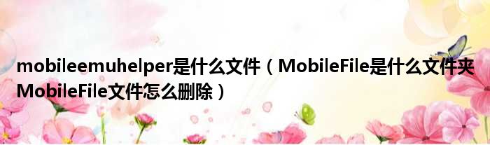 大家好,今天小六子来为大家解答以下的问题,关于mobileemuhelper是什么文件,MobileFile是什么文件夹MobileFile文件怎么删除这个很多人还不知道,现在让我们一起来看看吧!