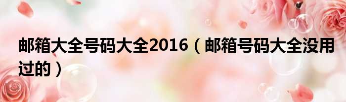 大家好,今天小六子来为大家解答以下的问题,关于邮箱大全号码大全2016,邮箱号码大全没用过的这个很多人还不知道,现在让我们一起来看看吧!