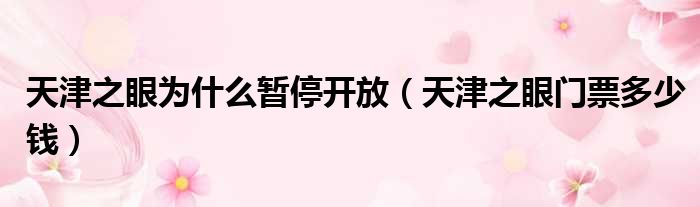 大家好,今天小六子来为大家解答以下的问题,关于天津之眼为什么暂停开放,天津之眼门票多少钱这个很多人还不知道,现在让我们一起来看看吧!