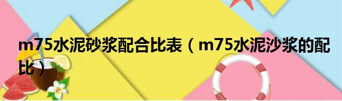 大家好,今天小六子来为大家解答以下的问题,关于m75水泥砂浆配合比表,m75水泥沙浆的配比这个很多人还不知道,现在让我们一起来看看吧!