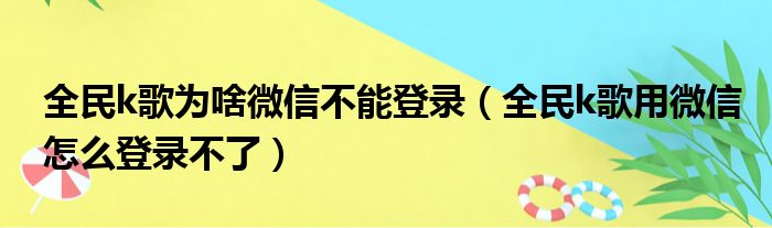 大家好,今天小六子来为大家解答以下的问题,关于全民k歌为啥微信不能登录,全民k歌用微信怎么登录不了这个很多人还不知道,现在让我们一起来看看吧!