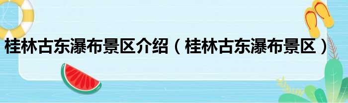 大家好,今天小六子来为大家解答以下的问题,关于桂林古东瀑布景区介绍,桂林古东瀑布景区这个很多人还不知道,现在让我们一起来看看吧!