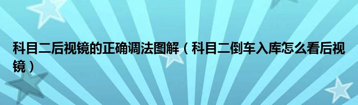 大家好,今天小六子来为大家解答以下的问题,关于科目二后视镜的正确调法图解,科目二倒车入库怎么看后视镜这个很多人还不知道,现在让我们一起来看看吧!