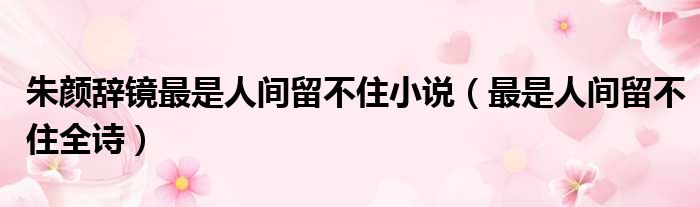 大家好,今天小六子来为大家解答以下的问题,关于朱颜辞镜最是人间留不住小说,最是人间留不住全诗这个很多人还不知道,现在让我们一起来看看吧!