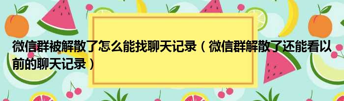 大家好,今天小六子来为大家解答以下的问题,关于微信群被解散了怎么能找聊天记录,微信群解散了还能看以前的聊天记录这个很多人还不知道,现在让我们一起来看看吧!