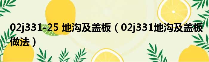 大家好,今天小六子来为大家解答以下的问题,关于02j331-25 地沟及盖板,02j331地沟及盖板做法这个很多人还不知道,现在让我们一起来看看吧!
