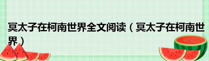 大家好,今天小六子来为大家解答以下的问题,关于冥太子在柯南世界全文阅读,冥太子在柯南世界这个很多人还不知道,现在让我们一起来看看吧!