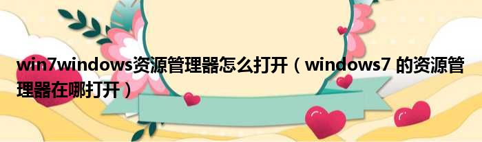 1、有好多方法打开:开始-所有程序-附件-资源管理器2、如楼上所说的右击开始选择打开资源管理器3、双击我的电脑4、(最方便的)直接按windows徽标键加字母E其实你可以把资源管理器锁定到任务栏,在资源管理器上右击选择锁定到任务栏,任务栏里的图标还可以换位置。