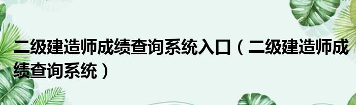 大家好,今天小六子来为大家解答以下的问题,关于二级建造师成绩查询系统入口,二级建造师成绩查询系统这个很多人还不知道,现在让我们一起来看看吧!