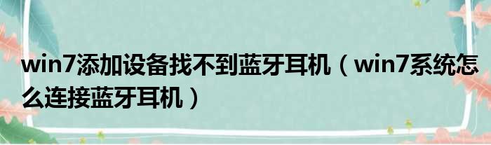 大家好,今天小六子来为大家解答以下的问题,关于win7添加设备找不到蓝牙耳机,win7系统怎么连接蓝牙耳机这个很多人还不知道,现在让我们一起来看看吧!