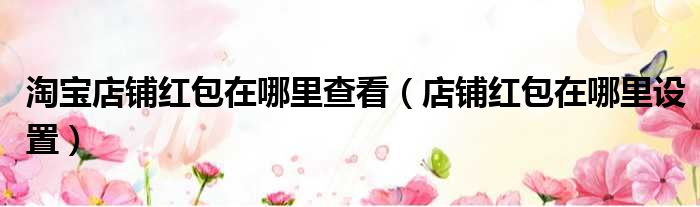大家好,今天小六子来为大家解答以下的问题,关于淘宝店铺红包在哪里查看,店铺红包在哪里设置这个很多人还不知道,现在让我们一起来看看吧!