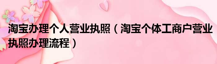 大家好,今天小六子来为大家解答以下的问题,关于淘宝办理个人营业执照,淘宝个体工商户营业执照办理流程这个很多人还不知道,现在让我们一起来看看吧!